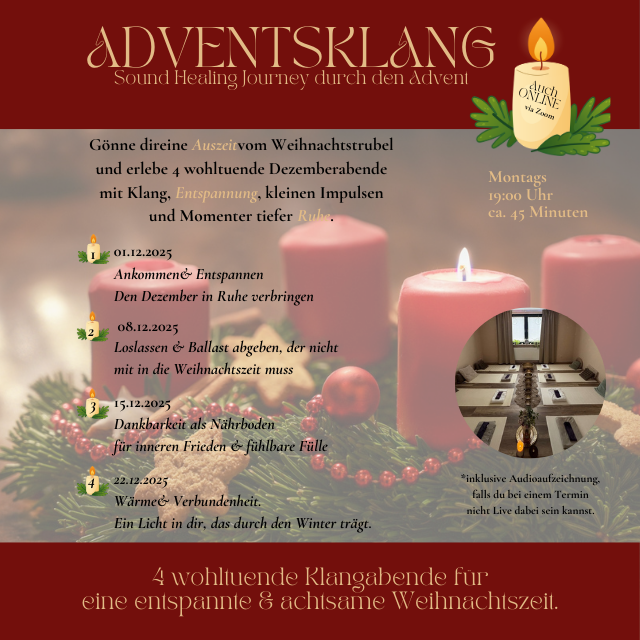 Klangmeditation, im wöchentlichen Rhythmus, getragen von den Themen der Jahreszeiten